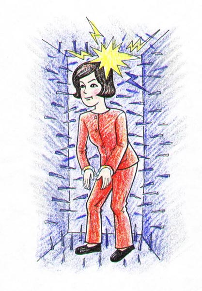 (4)毒打、电刑、捆绑、性侮辱等。狱警霍秀云唆使劳教人员,将一位法轮功学员的嘴堵住、整个头埋在被子里,拳打脚踢该学员的下身,用苍蝇拍猛击她的阴部,造成其阴部大面积破损、肿胀、小便艰难;还有的狱警指使劳教人员对未婚女学员进行性侮辱。”(详见明慧网二零零二年十月九日题为“北京拘留所、调遣处、新安女子劳教所折磨法轮功学员的种种手段(图)”的报道)