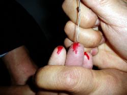 扎手指:用曲别针扎学员手指尖,直至出血,或将塑料尺劈开,用断面锋利处割学员的手指肚,还有的用牙签扎学员的手指肚,扎手指甲,直至出血。(图四)