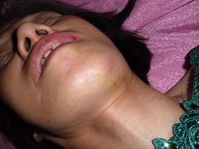 里玉书出狱一个月以后仍留有被灌食的伤痕